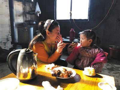 这日下午三点多,大奶奶寿宴上的客人离席散去,媳妇和女儿这才收拾残局,用烧煤取暖的火炉热一下剩菜吃饭。不巧炉子无人照看,灭了,屋里的气温零下1摄氏度,半年多没见的娘俩,一起吃了一顿剩的冷菜。