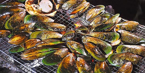 而贝壳类海产则适合放在网子上烧烤,因为方便快捷,其中西施马珂蛤(贵妃蚌)是平价之选,若想尝厚肉的贝类,可选秋季时令的扇贝和纽西兰孔雀蛤,它们肉质肥美鲜甜、壳身厚大,不怕出现壳烧焦但肉却未熟的情况。烤贝壳类时要注意将壳平均摆放在烤网上,等到壳中汁液沸腾,壳边微焦便可食用。