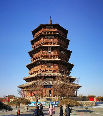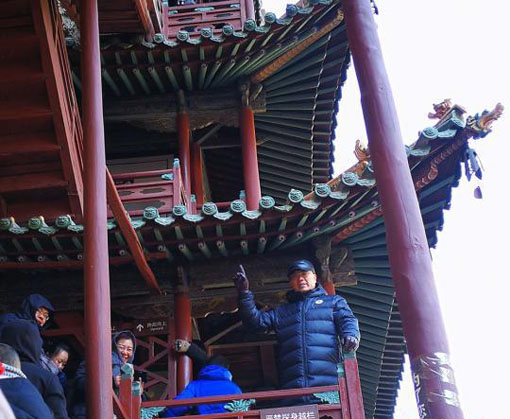 探访过中国现存的唯一一座佛、道、儒三教合一的寺庙──悬空寺后,路锁柱带着家人前往五十多公里外的应县木塔。