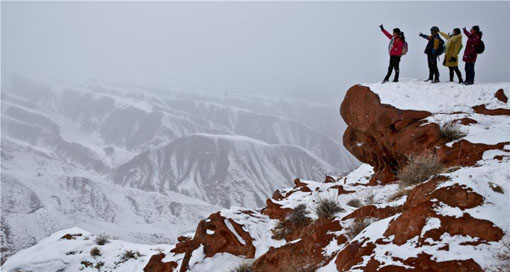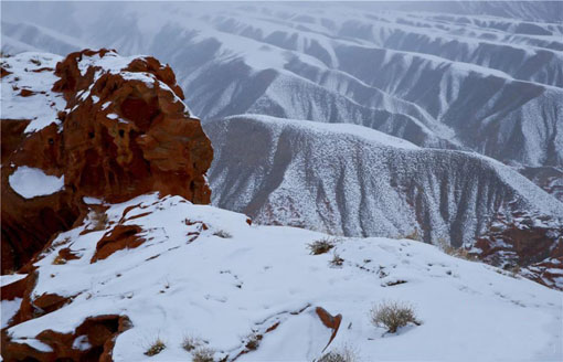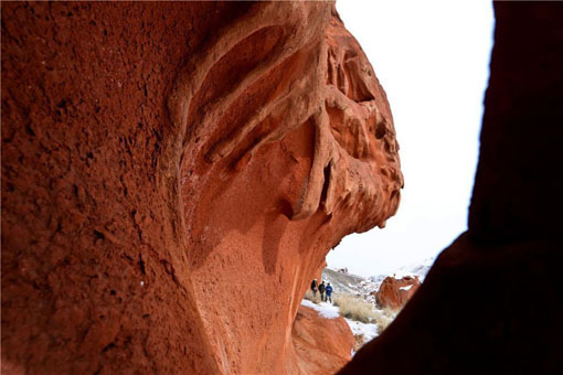 甘肃张掖肃南丹霞造型怪异被称“鬼脸” 12 02, 2019 登载于 中国万象 春节期间,一场大雪后位于甘肃张掖肃南裕固族自治县的丹霞在白雪的映照下更加雄伟壮丽和神秘,吸引游客前来观光。此处丹霞因其造型怪异,景色瑰丽,被旅游爱好者称为“鬼脸丹霞”。 更多相关: « 一位建筑人的春节:寻访千年古建 传承“鲁班精神” 消失中的年菜 »